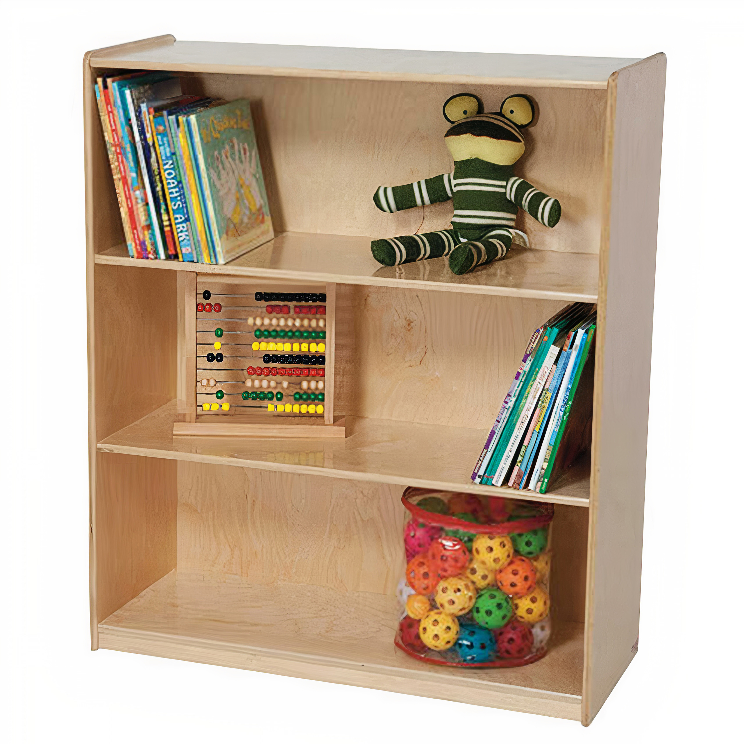 GREENGUARD® Gold certified. Attractive bookshelf provides versatility in every room with fixed shelves that have plenty of space for books, puzzles & more. Constructed from birch plywood, and coated with our exclusive Tuff-Gloss™ UV finish. A recessed back for added strength, stability, and beauty. Fully rounded corners and edges for maximum safety.