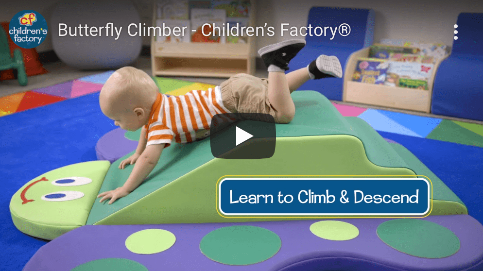 Young explorers enjoy nonstop muscle-building fun with our friendly butterfly! Place this colorful climber in the center of the room for little ones to improve crawling, balancing, and climbing skills.