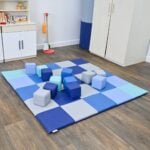 The Patchwork Mat & Block Set features a comfortable, thick mat and lightweight blocks that invite toddlers to engage in both active and quiet play.