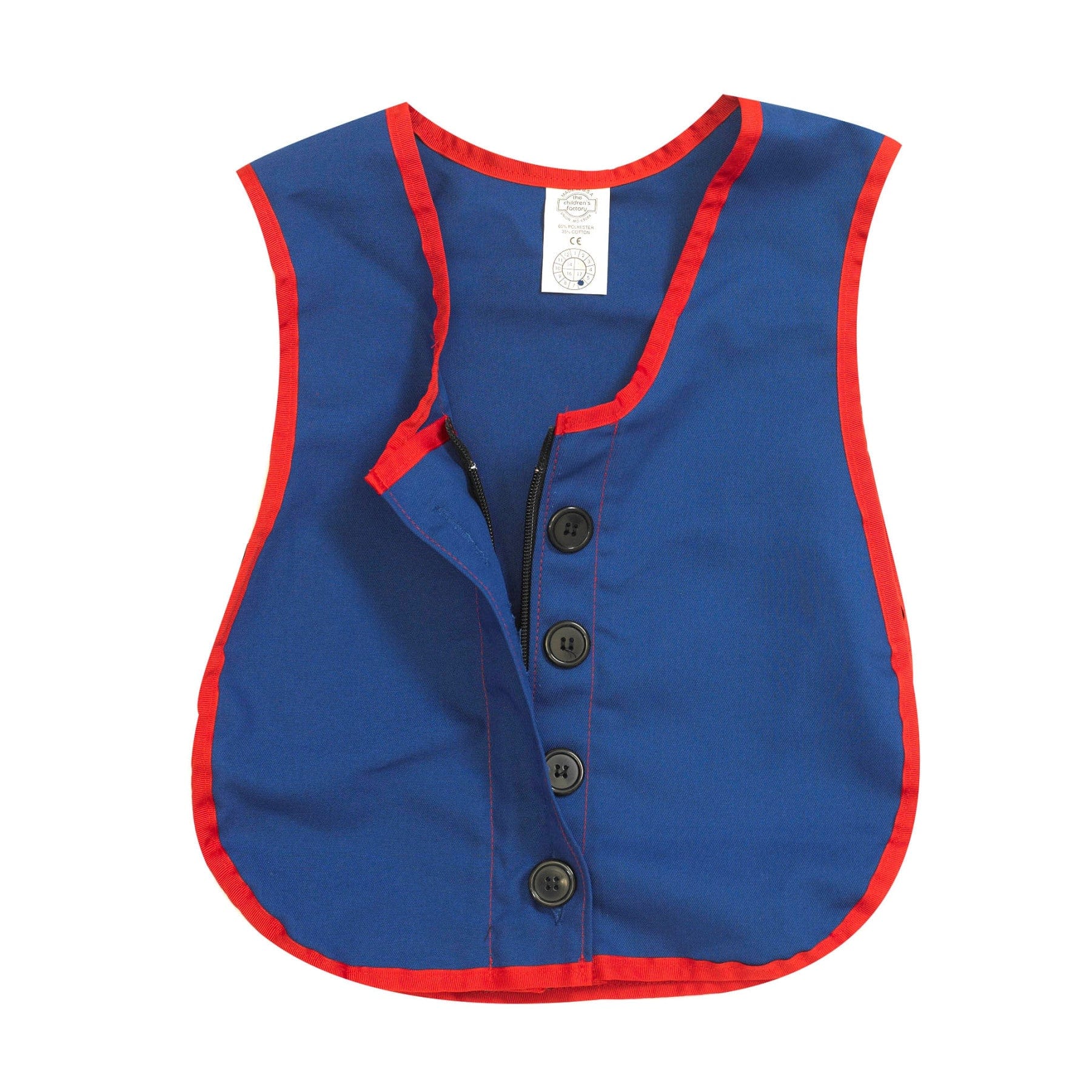 Heavy duty, cotton polyester blend vest has an elastic panel on each size allowing one size to fit little ones.