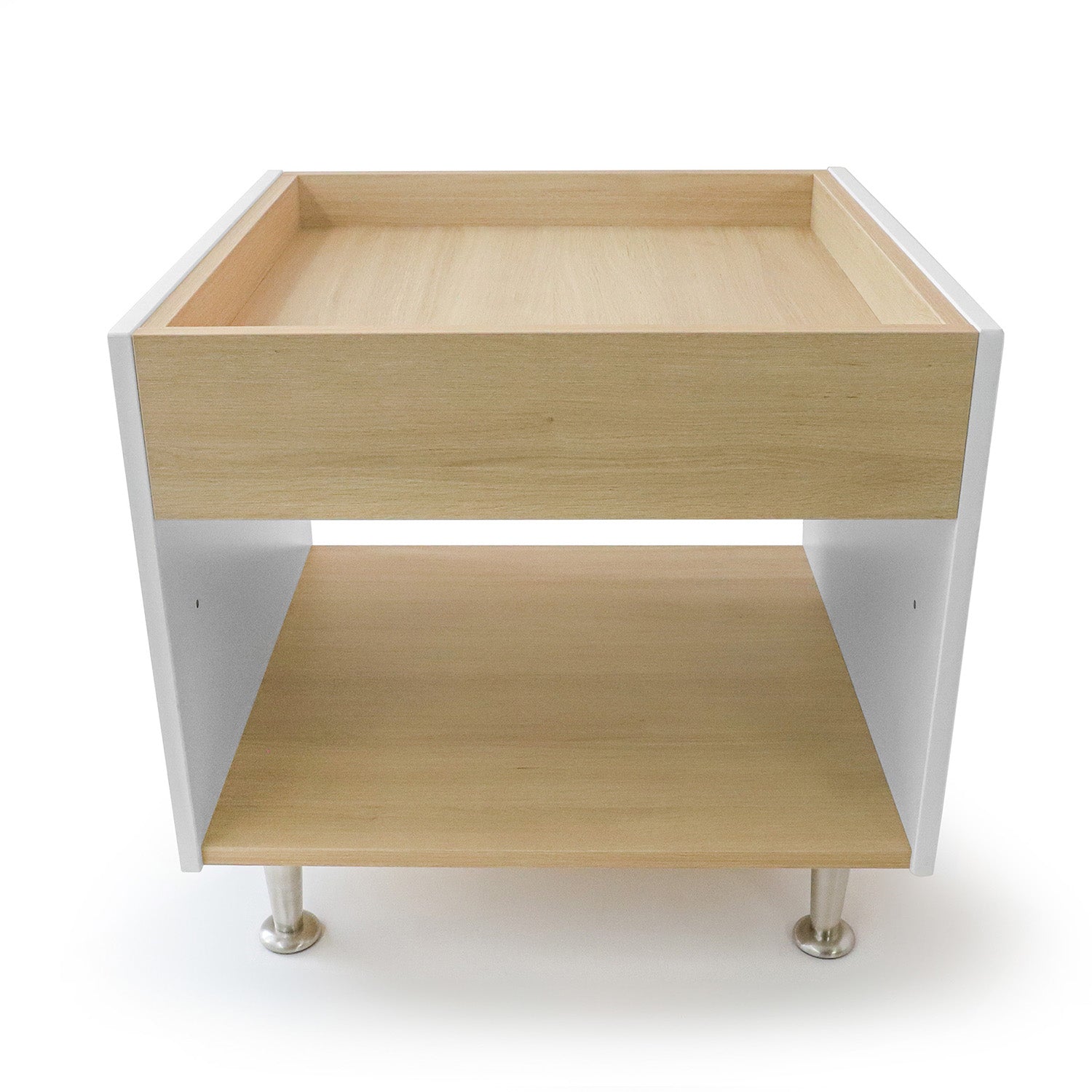 Foster creative play and exploration! Beautiful contrasting white and textured white oak panels form crisp, clean lines that add refined style to this table that’s just the right for young children to reach, play and explore. The walls along the perimeter of the table surface prevent objects from falling off and the wide base provides sure-footed stability with ample storage underneath. Ships ready to assemble and coordinates with all other pieces in the sophisticated chic and thoroughly modern elevatED™ Collection.