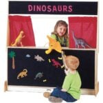 A stage, a store, a drive-up window! Wooden braces for stability. Curtain rod and curtains included. Available in Write-n-Wipe and Flannel.