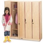 Full-size lockable lockers! Featuring two shelves and two double coat hooks in each section. Individually keyed for security. For stability, locker must be attached to the wall.