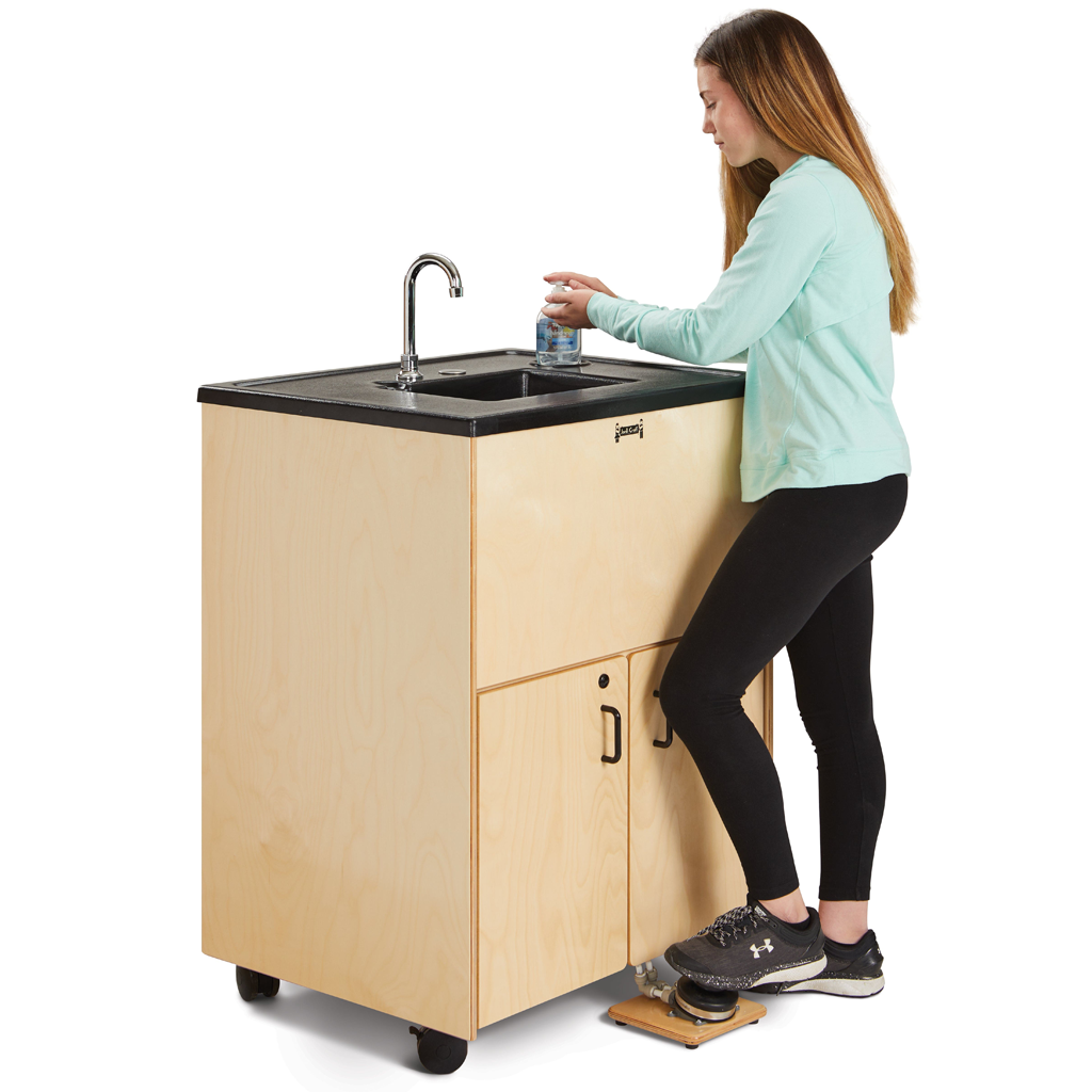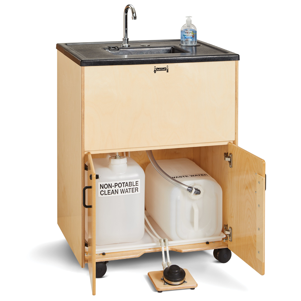 Our popular portable sink – except no electricity required! Encourage hand washing habits and help keep everyone healthy while meeting licensing requirements. The 38″ counter height is perfect for adults or older children with the help of a Step-Up Stool.
