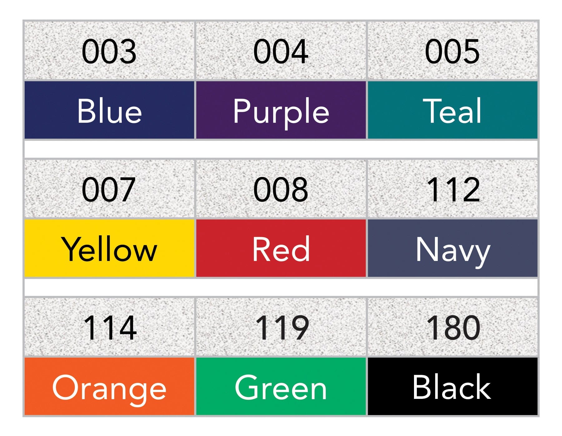 | Color/Finish | Black, Blue, Navy Blue, Purple, Teal |
