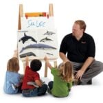 Easily display big books or supplement story time with this Write-n-Wipe easel. Hang big books on the five dowels behind the easel and clip books in place with two inlcuded clips. Write-n-Wipe panel is 23″ wide x 30″ high.