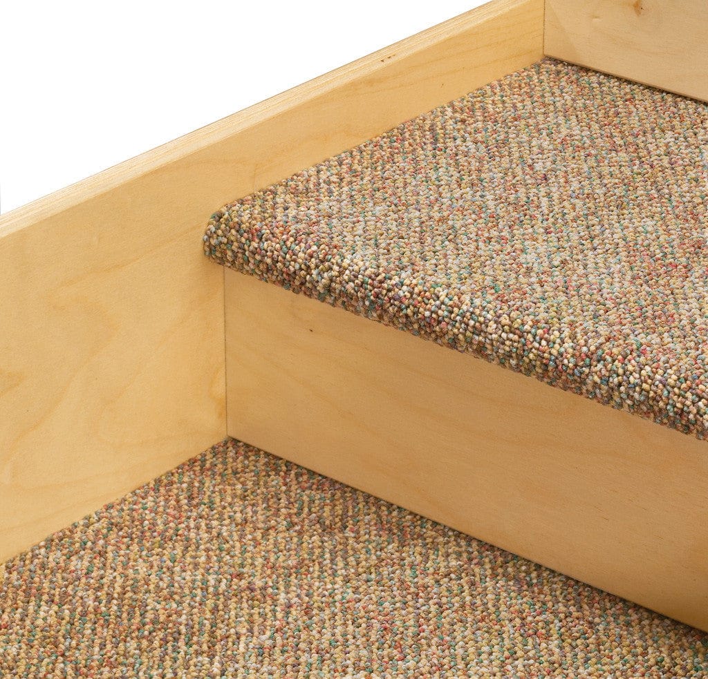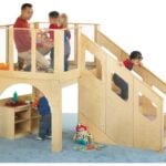 Design a dramatic play setting or reading nook under the deck. The five steps and roomy deck are carpeted.