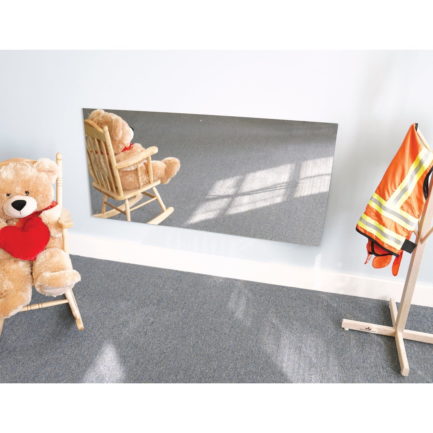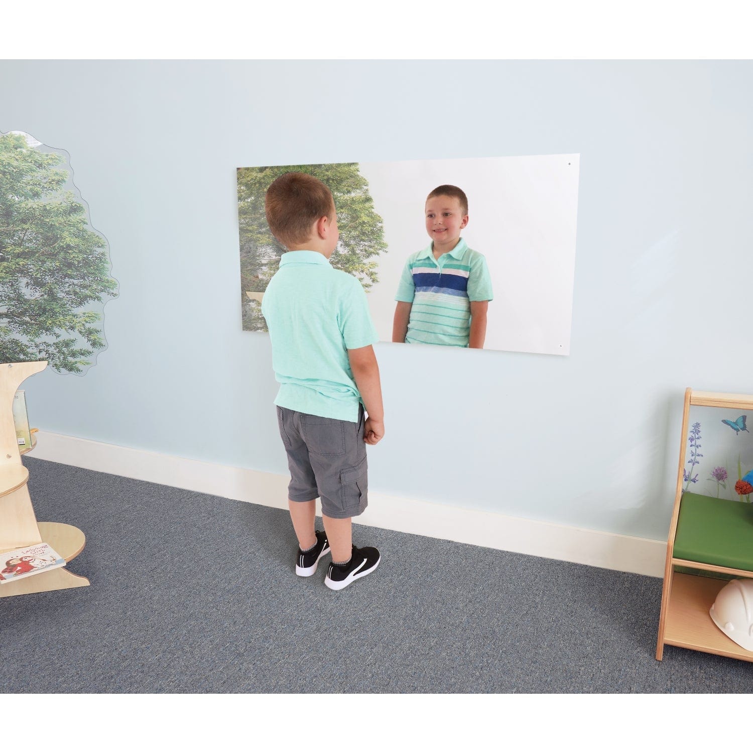 Best Seller! Mirrors are an important furnishing in an Early Learning environment that help young children develop self-awareness, self-esteem, curiosity, and emotional and cognitive development. Our popular and economical rectangle mirror is constructed in safe, shatter-resistant acrylic and the edges and corners have been rounded for additional safety. Wall mounting screws included. Need a smaller size? Check out our WB6625 Square Mirror [sold separately].