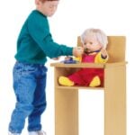 Make kids feel at home in the kitchen feeding their dolls. Feeding tray is fixed for easy removal of dolls.