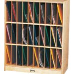 Thirty slots to organize classroom or office portfolios. Removable vertical partitions. Individual slots are 2.5″ wide x 13″ deep x 10″ high.