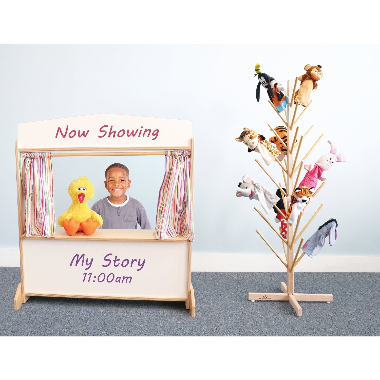 The sturdy, compact design and 32 durable “branches” hold, organize and visually display all those favorite puppets in one convenient place.