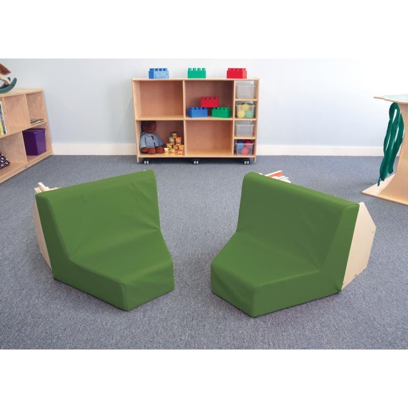 Top 50 Best Seller! For group reading time or just hanging out, our popular reading nook is ideal for single use or setting up a comfortable reading and socializing area that can be configured to your specific room environment. Features include a green vinyl padded foam seat and seat back for maximum comfort and a clever built-in book storage compartment on the backside. Need more than one? Check out our specially priced WB8510 Five Section Reading Nook [sold separately].