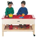 Organize your sensory area while providing a place for children to explore their senses! Store sensory toys on the handy shelf beneath the 6″ deep plastic tub.