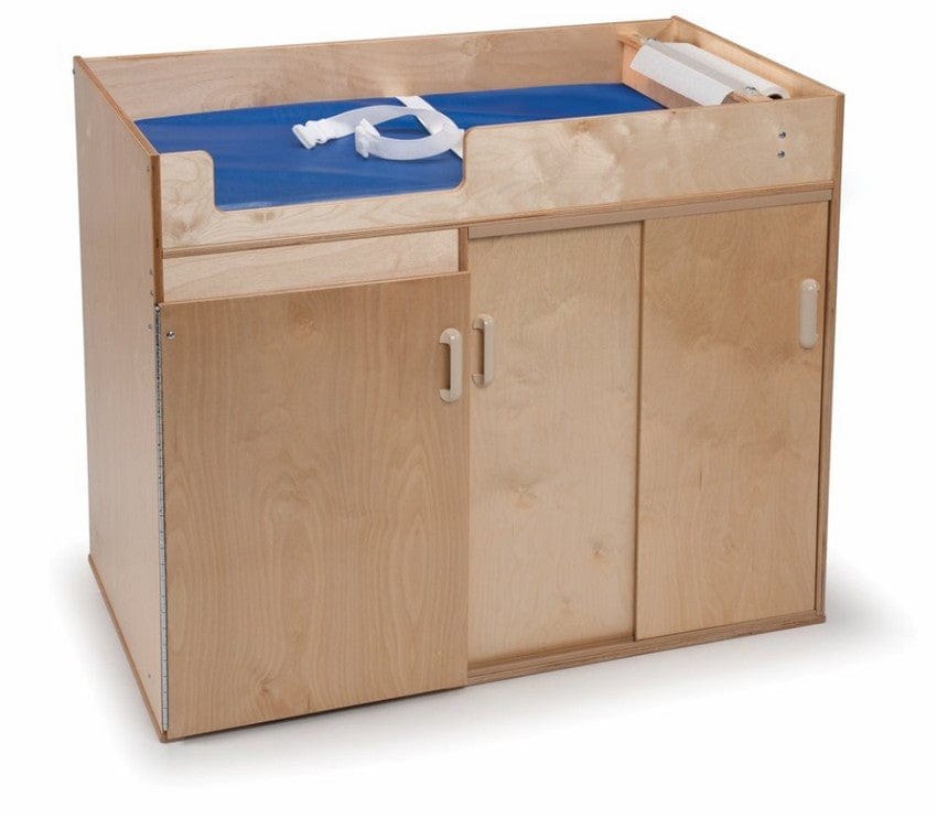 Behind the right-hand sliding doors is additional storage for supplies. Comes complete with a paper roll holder that features an easy-tear cutter bar, washable mattress, safety strap, and one paper roll. Replacement paper rolls sold separately.