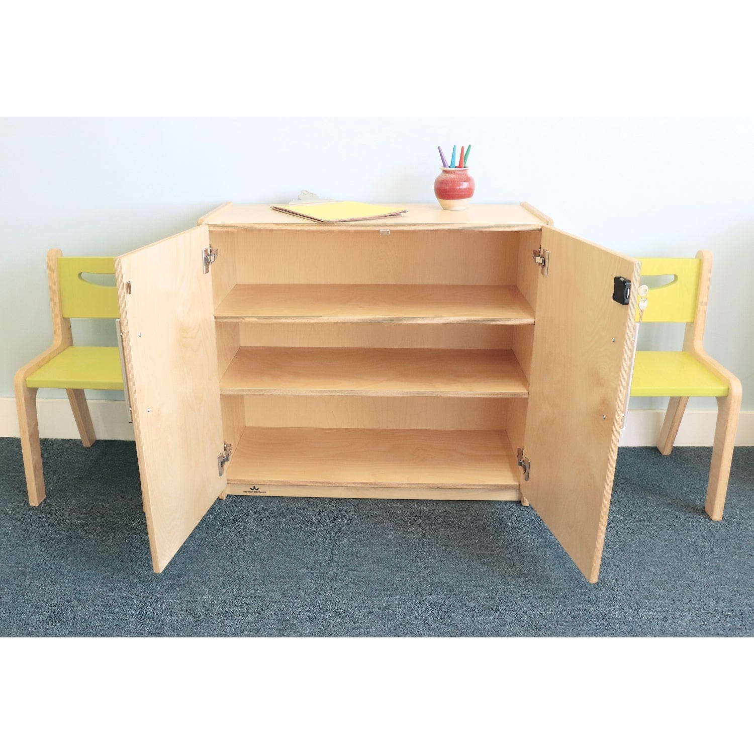 Extra sturdy, stylish and secure storage! This attractive storage cabinet features 3/4-in plywood construction and styling that integrates seamlessly with all other pieces in our Whitney Plus collection.